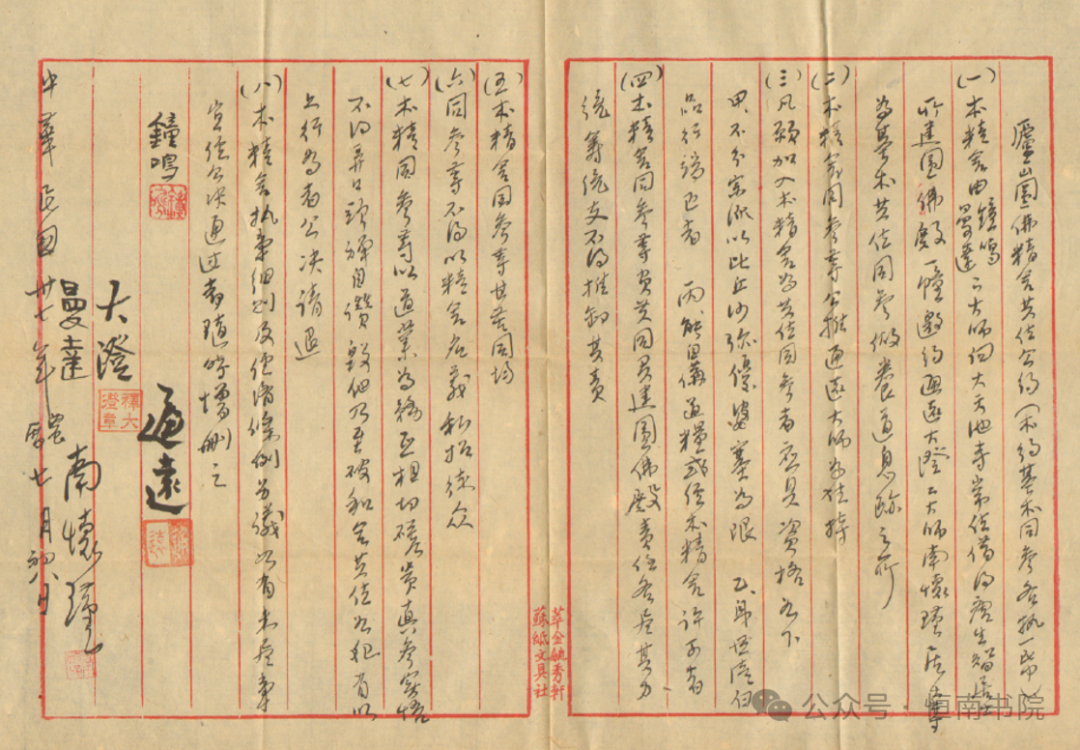 先生签署的〈庐山圆佛精舍公约〉