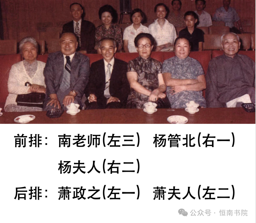 杨管北自1956年认识并从学于先生,始终坚定支持先生办学授课。当杨管北缠绵病榻之时,先生亦始终关怀指点。2016年出版的《南怀瑾与杨管北》一书记录了这段二十年笃厚的道情、友情。