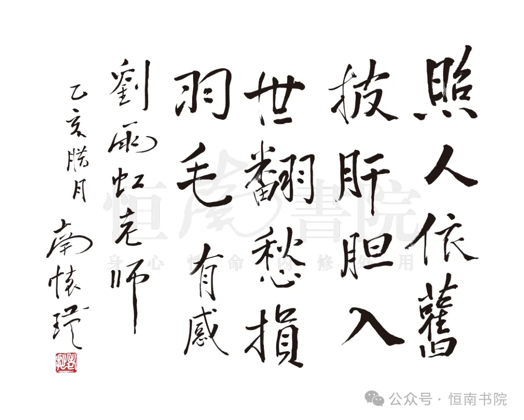 一九九五年冬在香港时,有一天刘雨虹进门见先生在写字,求字的亲证法师随侍在侧。刘雨虹看了字在一旁道:“老师,你这个字是败笔。”没想到先生写完以此墨宝相赠。