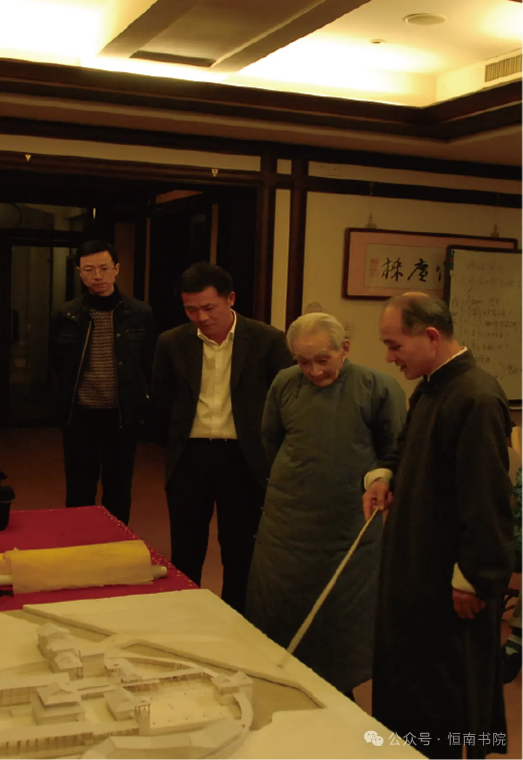 登琨艳为先生讲解“七都老太庙文化广场”设计