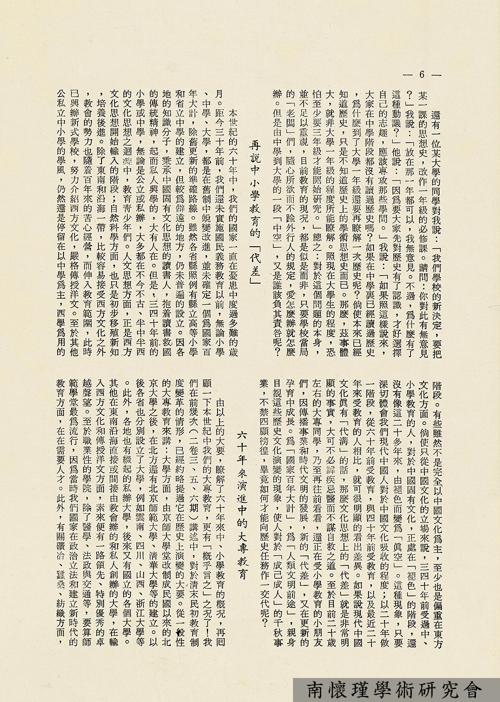 《人文世界》文选 | 南怀瑾:教育与文化的中空
