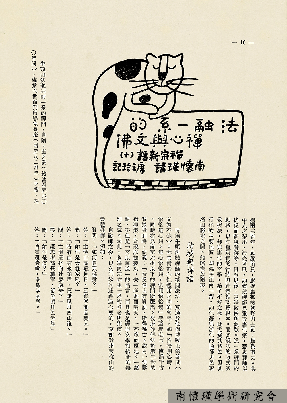 《人文世界》文选 | 南怀瑾:禅宗新语(十)——法融一系的禅心与文佛