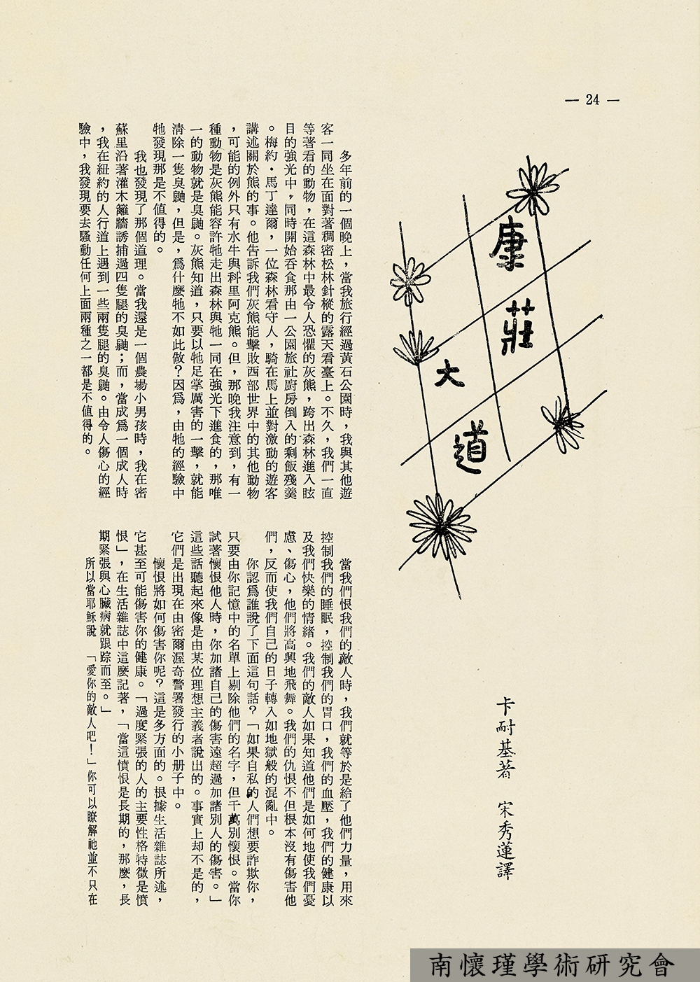 南怀瑾先生在创办东西精华协会初期,为配合协会宗旨,融汇交流东西方文化思想,复兴中国学术文化,努力于文化工作的潜移默化,在人力、财力双重困境下,毅然决然地创办了《人文世界》杂志社,1971年5月创刊号(月刊)问世。从即日起,每周二、四,我们连载《人文世界》杂志文选,供研究南怀瑾先生生平与学术思想者参考。