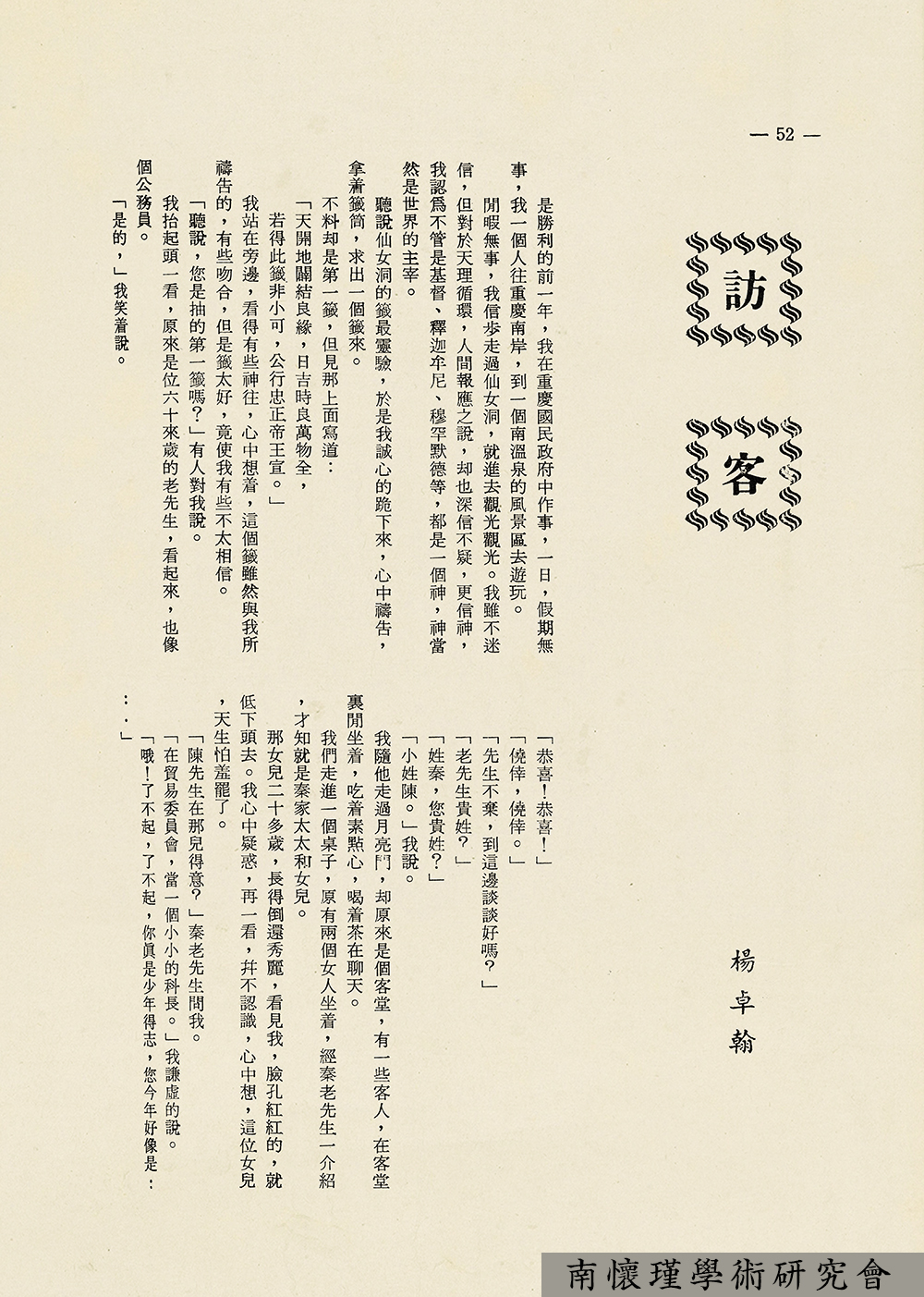 南怀瑾先生在创办东西精华协会初期,为配合协会宗旨,融汇交流东西方文化思想,复兴中国学术文化,努力于文化工作的潜移默化,在人力、财力双重困境下,毅然决然地创办了《人文世界》杂志社,1971年5月创刊号(月刊)问世。从即日起,每周二、四,我们连载《人文世界》杂志文选,供研究南怀瑾先生生平与学术思想者参考。