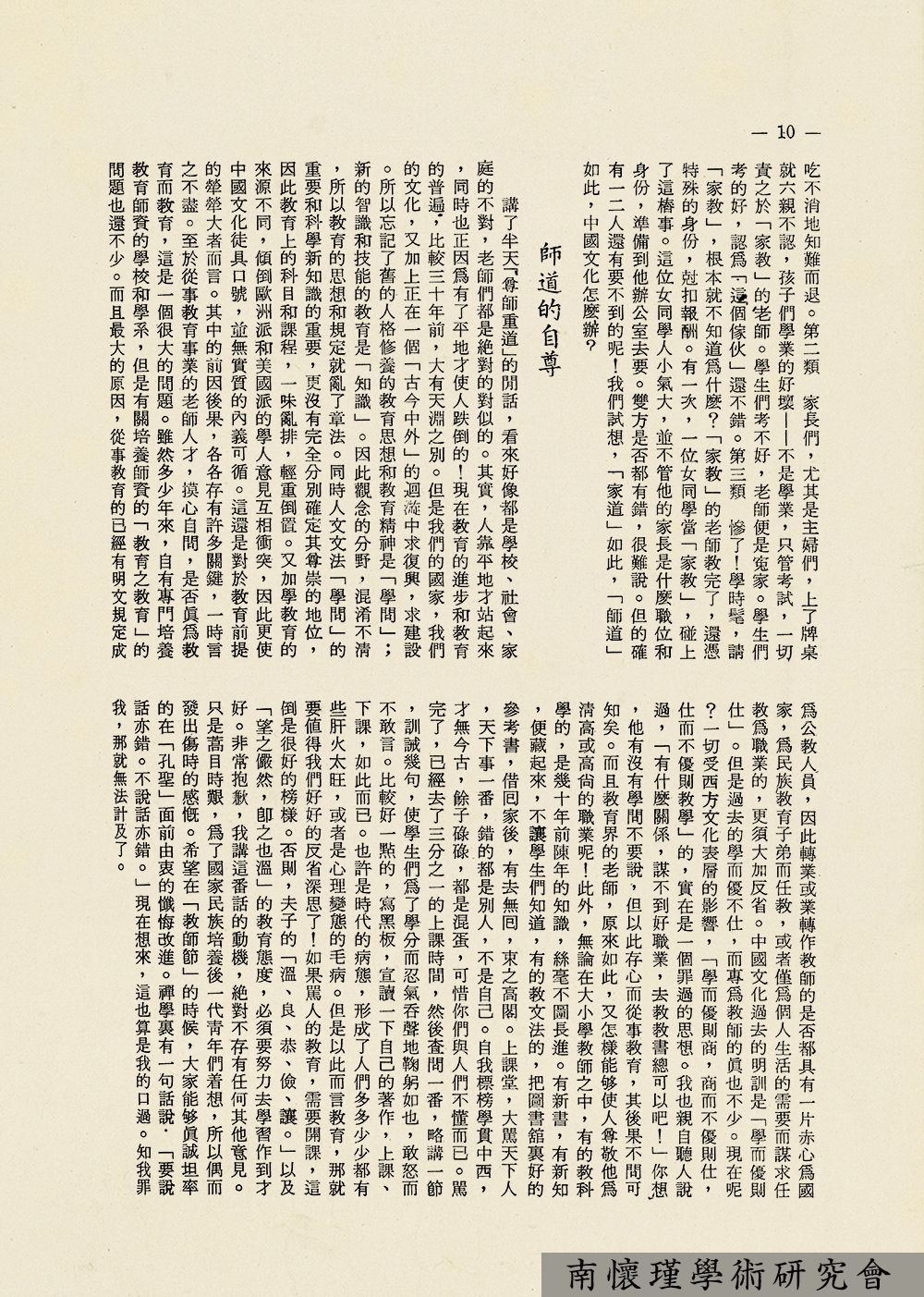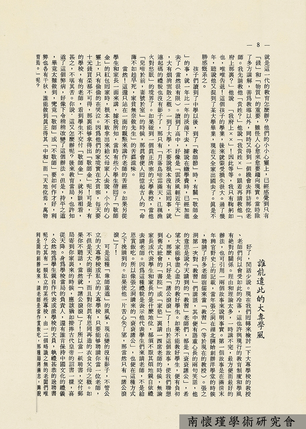 南怀瑾先生在创办东西精华协会初期,为配合协会宗旨,融汇交流东西方文化思想,复兴中国学术文化,努力于文化工作的潜移默化,在人力、财力双重困境下,毅然决然地创办了《人文世界》杂志社,1971年5月创刊号(月刊)问世。从即日起,每周二、四,我们连载《人文世界》杂志文选,供研究南怀瑾先生生平与学术思想者参考。