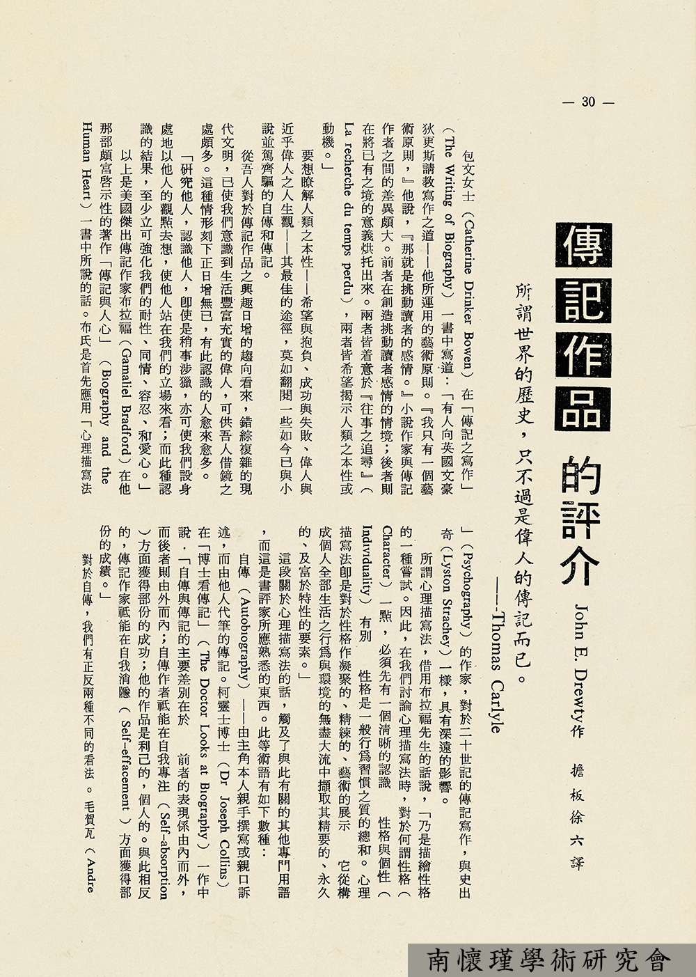 本篇源自《人文世界》 合订本第二卷第九期 发布于 1972.9.1