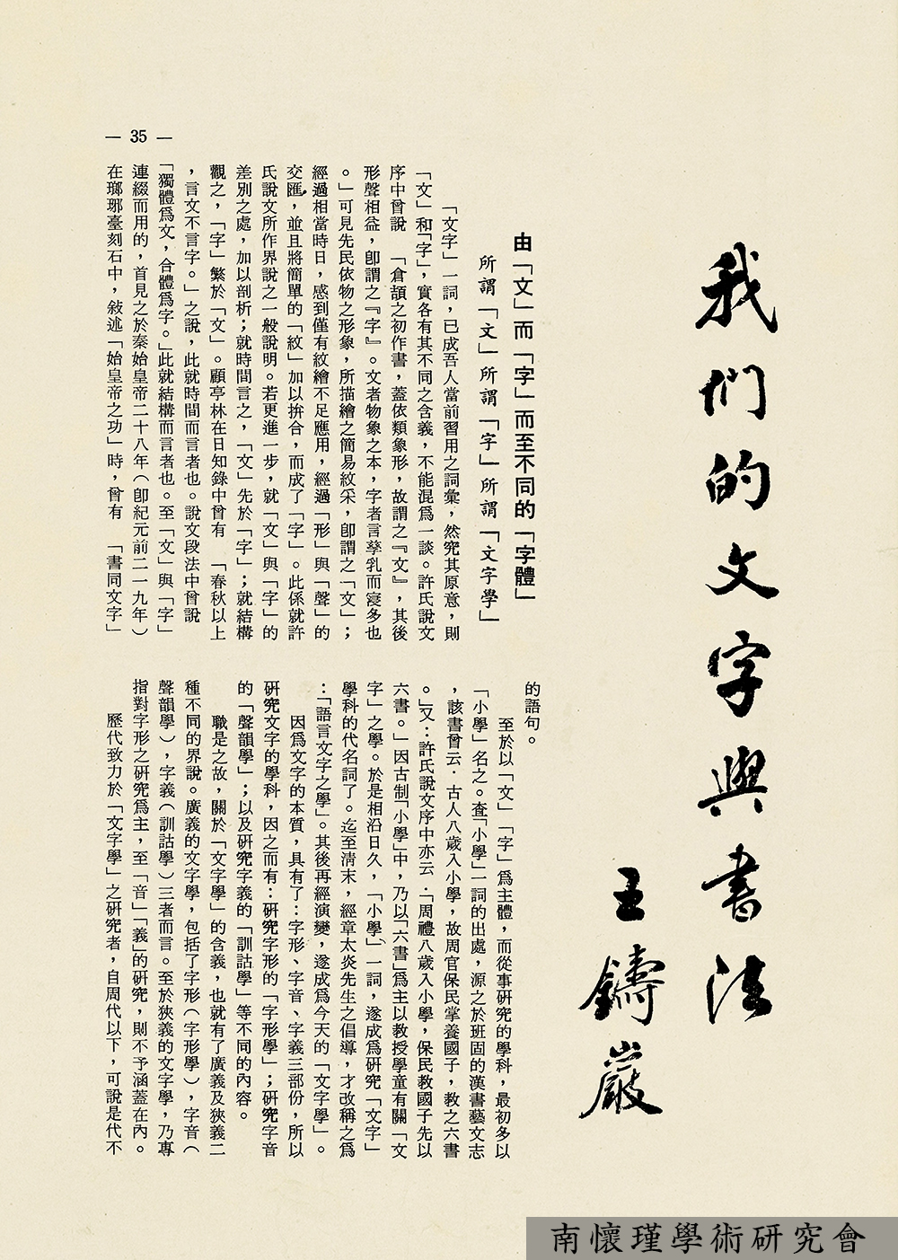 南怀瑾先生在创办东西精华协会初期,为配合协会宗旨,融汇交流东西方文化思想,复兴中国学术文化,努力于文化工作的潜移默化,在人力、财力双重困境下,毅然决然地创办了《人文世界》杂志社,1971年5月创刊号(月刊)问世。从即日起,每周二、四,我们连载《人文世界》杂志文选,供研究南怀瑾先生生平与学术思想者参考。