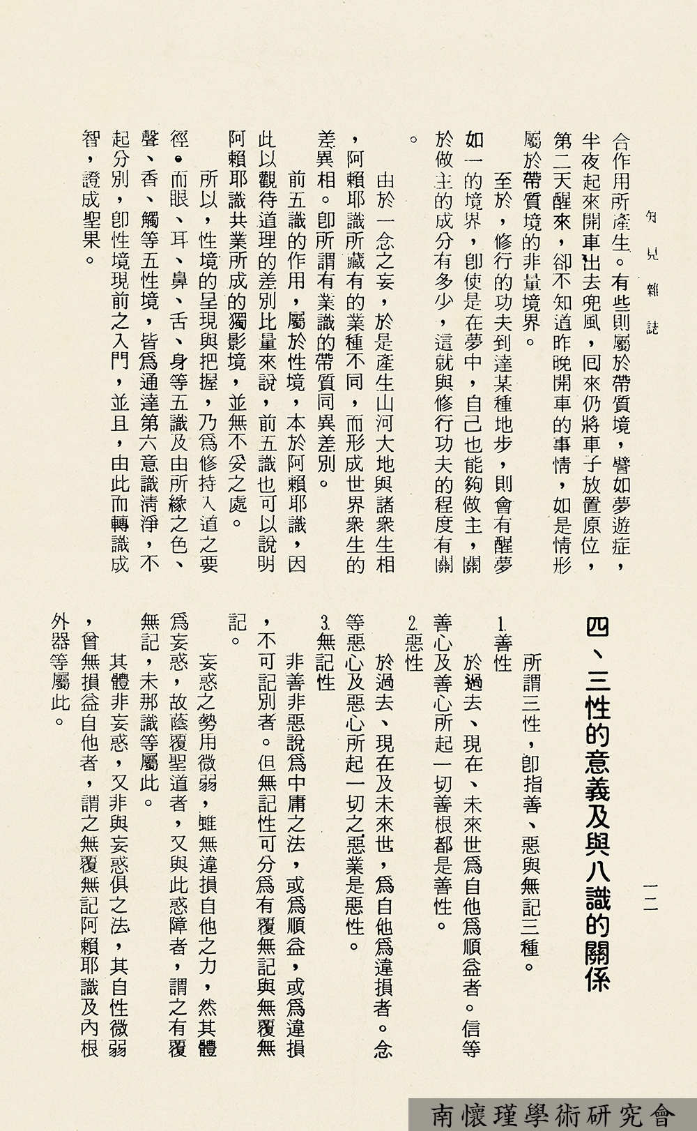 想起在台湾时,南师曾讲过唯识,并有十方听众整理记录,曾在《知见》杂志上发表,记得是三篇。由于南师改正这三篇记录,花了太多时间,还不如自己去写,故而就未再继续修改了。不过,实际上也没有工夫去写。后来网络上有人听录音整理,据说错误很多。所以唯识是很不容易的,要与修证配合了解。
