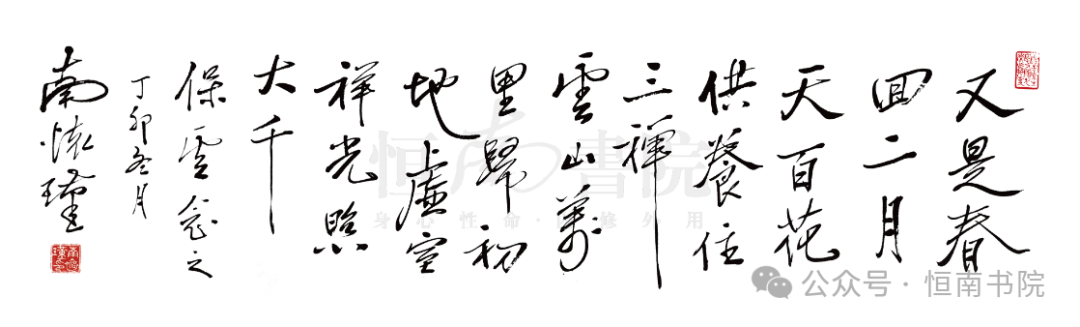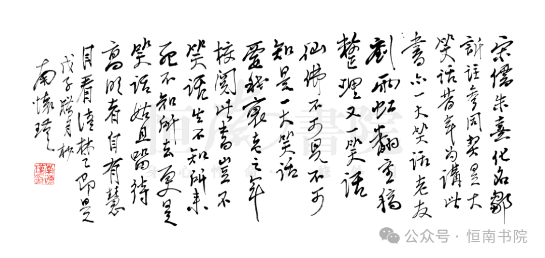 一九九五年冬在香港时,有一天刘雨虹进门见先生在写字,求字的亲证法师随侍在侧。刘雨虹看了字在一旁道:“老师,你这个字是败笔。”没想到先生写完以此墨宝相赠。