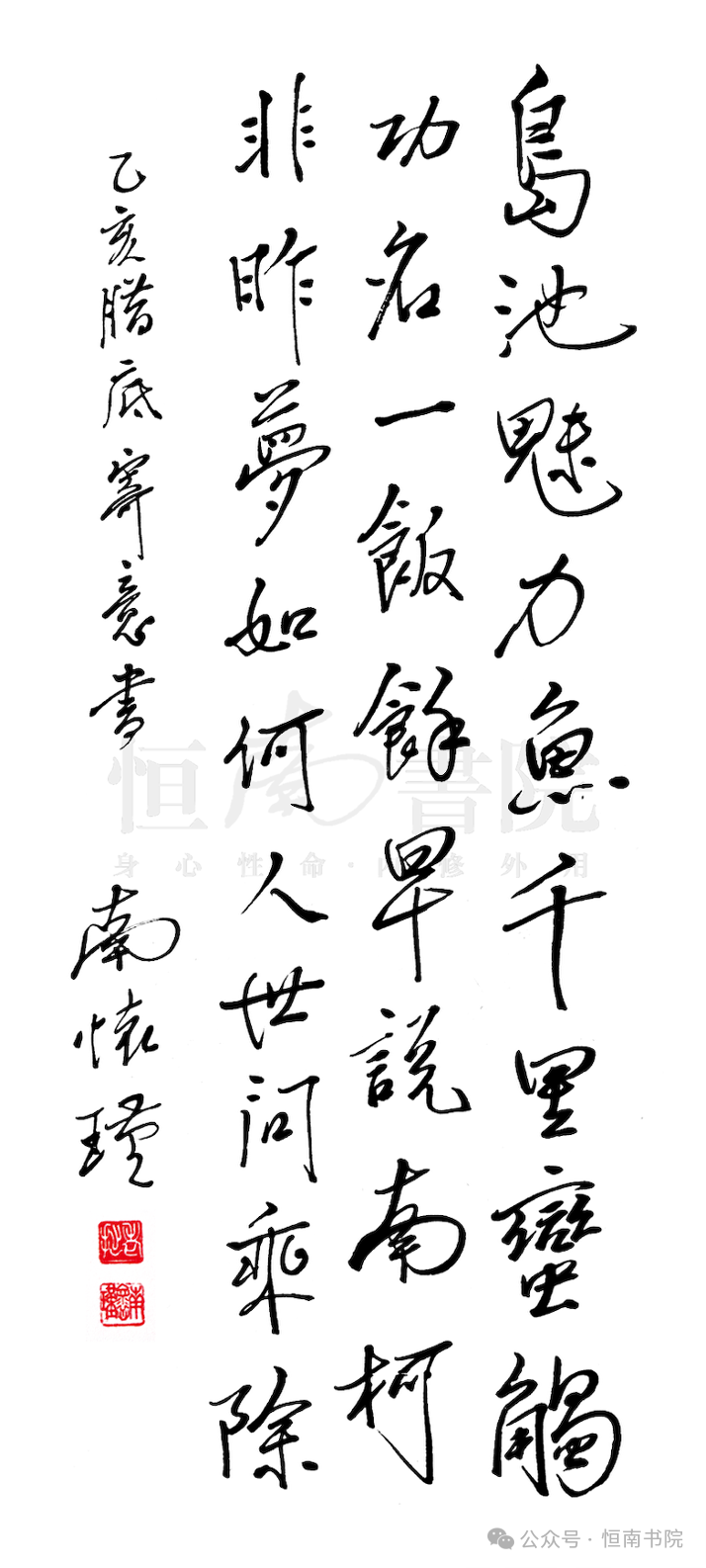 一九七七年,先生闭关期间所作《无题》四首之二。一九八七年冬,于美国华盛顿书赠刘雨虹的女儿袁保云。