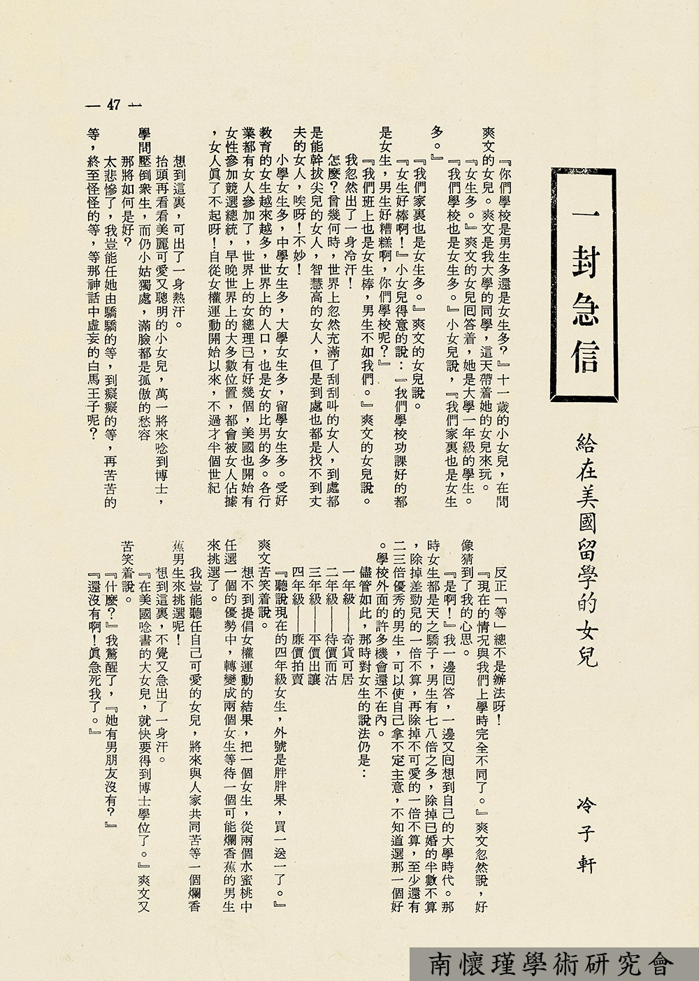 本篇源自《人文世界》 合订本第二卷第八期 发布于 1972.8.1