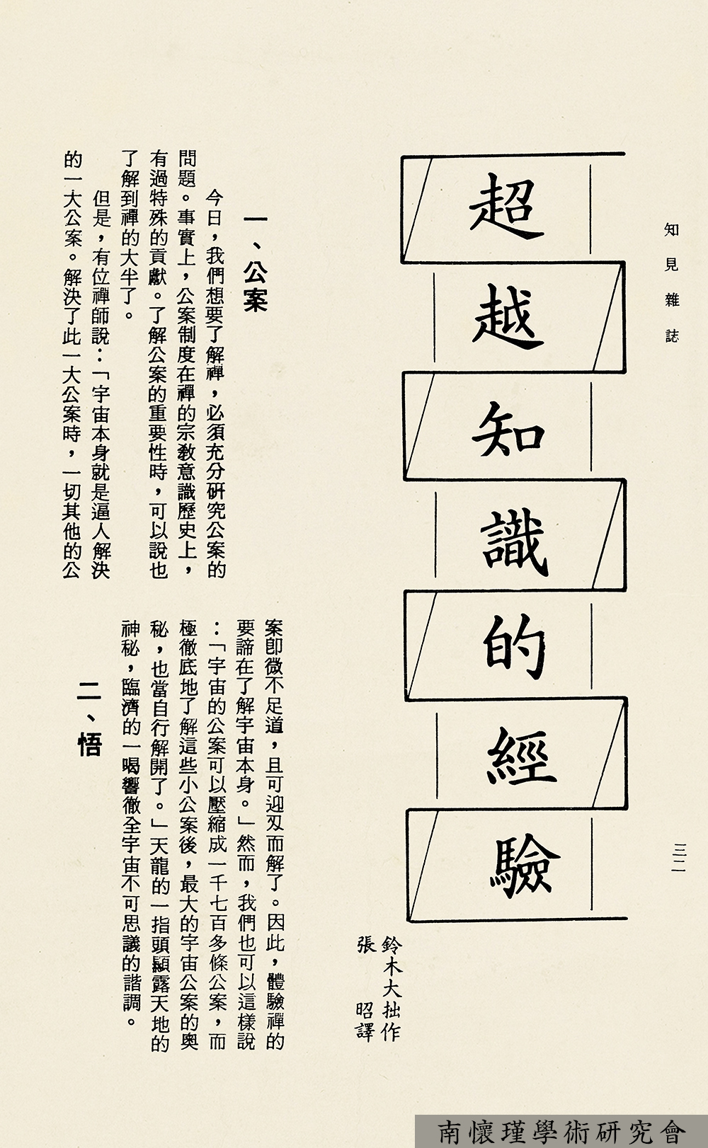 从即日起,连载《知见》杂志文选,供研究南怀瑾先生生平与学术思想者参考。