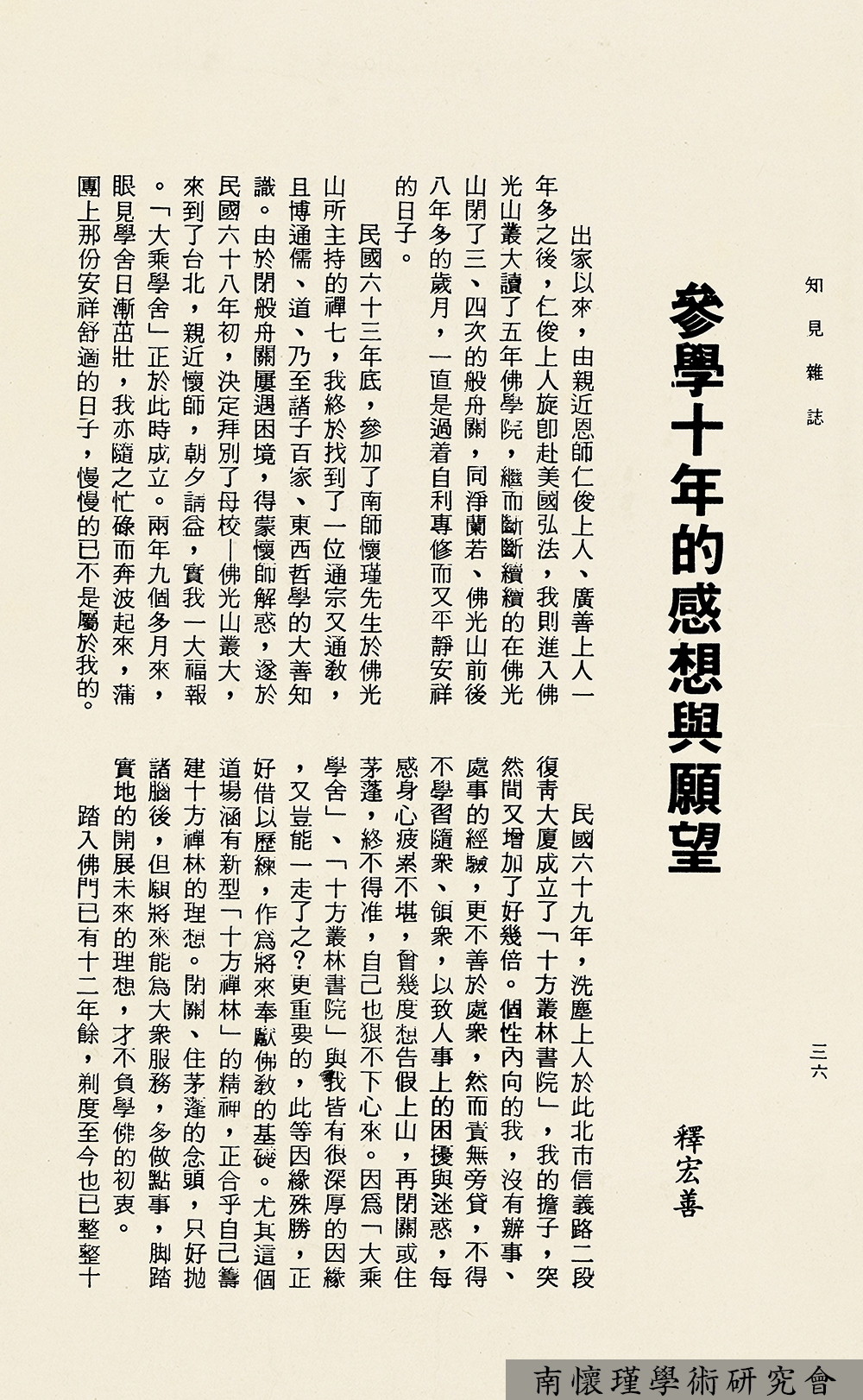 《知见》文选 | 释宏善:参学十年的感想与愿望